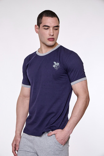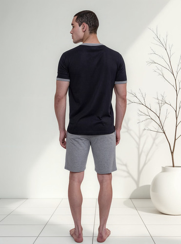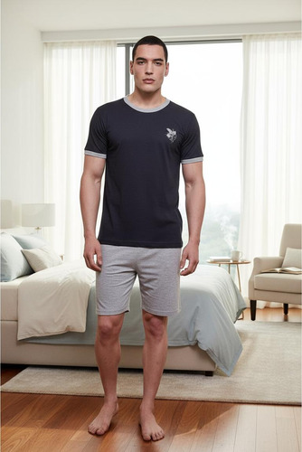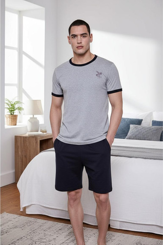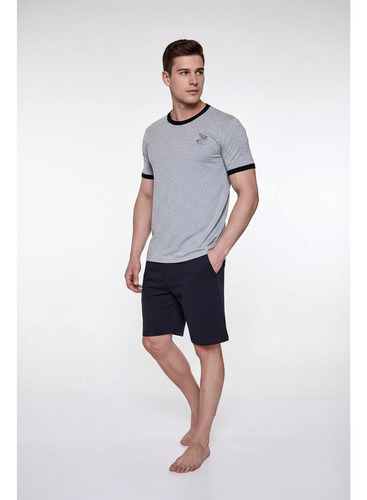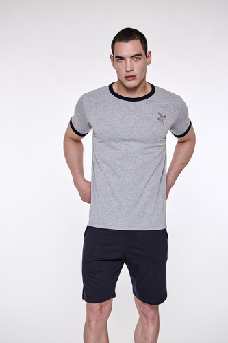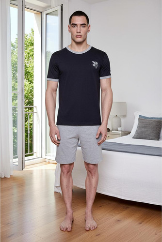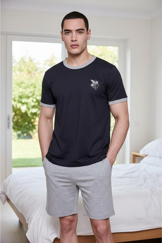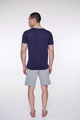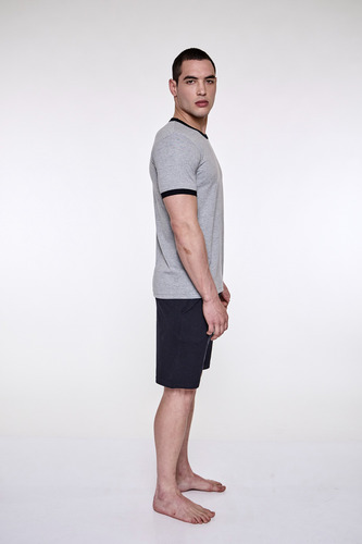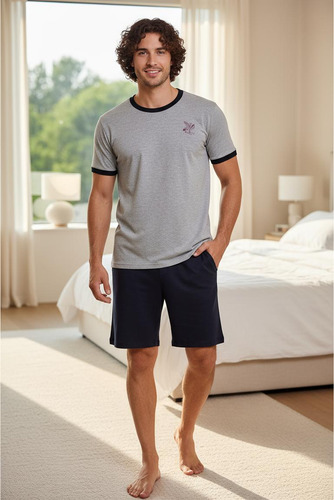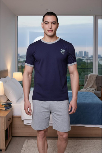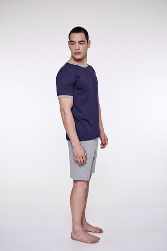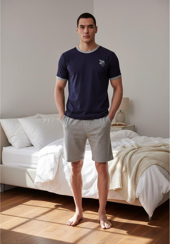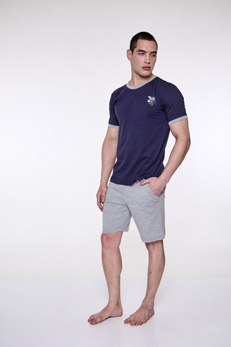Pijama de hombre manga corta escote redondo, de jersey algodón natural. Tejido suave, resistente, duradero e hipoalergénico. Prenda suelta y cómoda.
