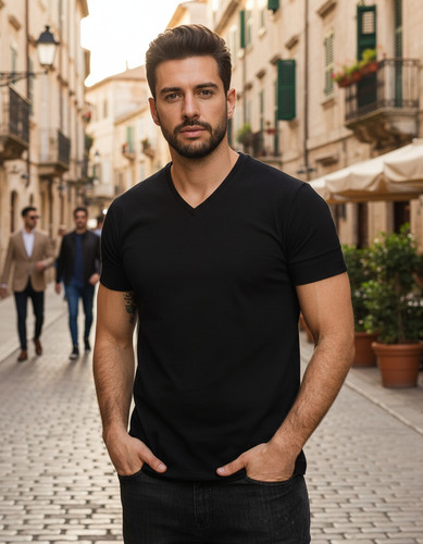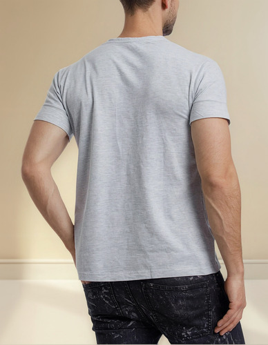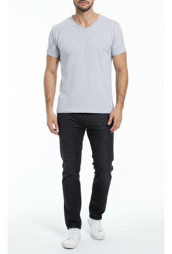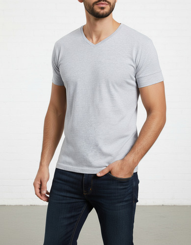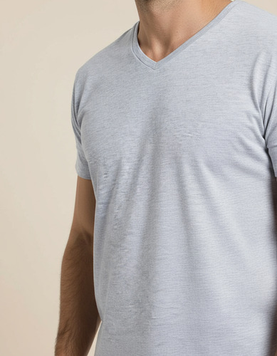 Remera manga corta de algodón escote en V.