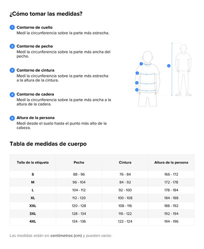 | Talle | S, M, L, XL, XXL, XXXL, XXXXL |